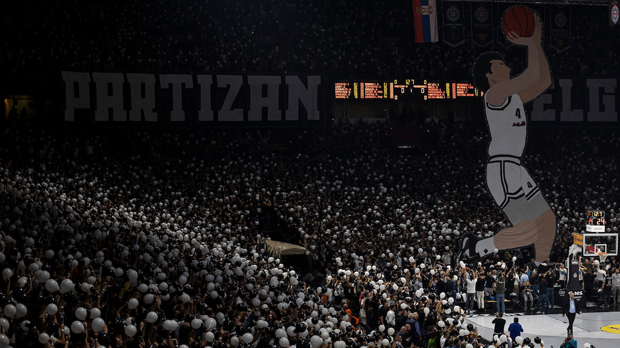 Кошаркаши Партизана играју меч против Фенербахчеа у оквиру седмог кола Евролиге у Београду, а навијачи црно-белих посветили су кореографију некадашњем играчу Саши Ђорђевићу који је клубу тројком донео титулу првака Европе.